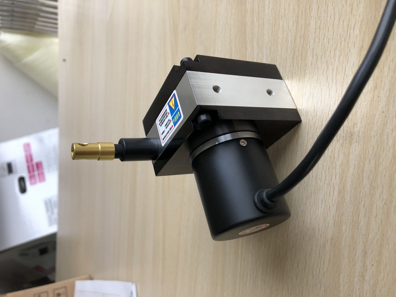 此款拉線位移編碼器是XF05系列拉線位移編碼器,量程是0-1500mm,屬于小量程拉線位移編碼器,數字輸出的有1000脈沖,2000脈沖,2500脈沖,5000脈沖 ,10000脈沖等可選,何總還要求可以記錄數據,于是我們的技術給配上了脈沖數顯表。